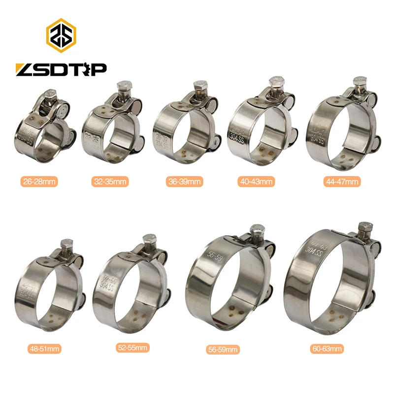 ZSDTRP 26-63mm Stainless Steel Motorcycle Exhaust Clamp Clip For Slip-on Motorcycle Muffler Clamp Kit
