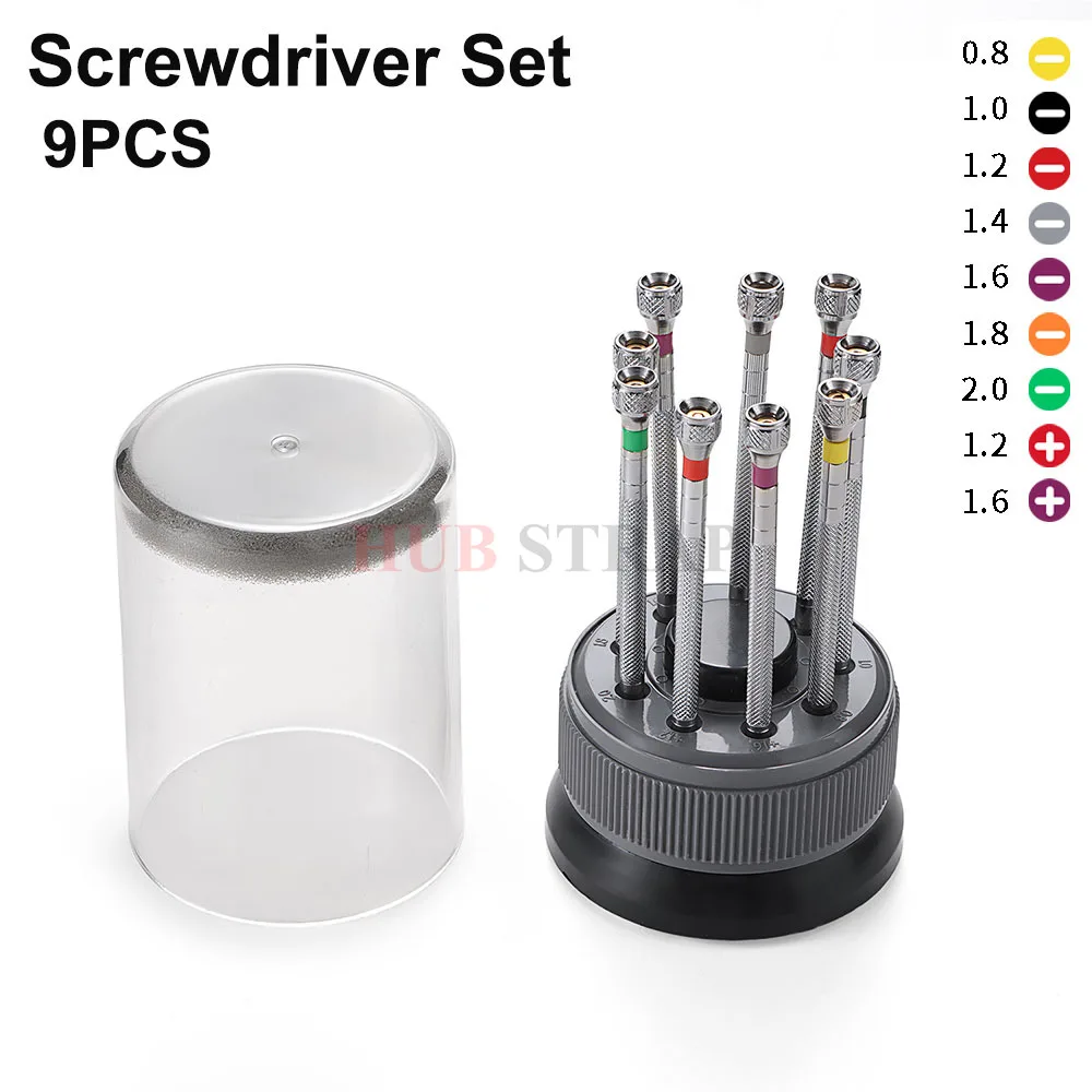 Stainless Steel Precision Screwdriver Set Watch Repair Tool Kit 9pcs Watch Glasses Flat Blade Assort Slotted Tool for Watchmaker