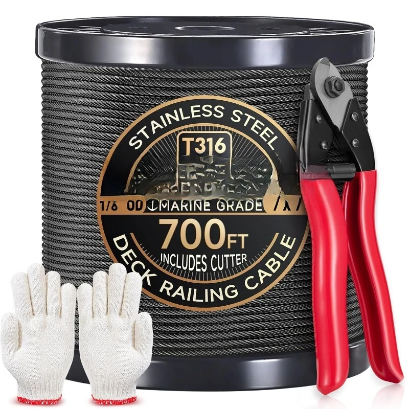 700 Feet 1/8" Black Stainless Steel Cable Wire Rope for Deck Cable Railing Kit, T316 Marine Grade, 7×7 Strands Construction, Rus