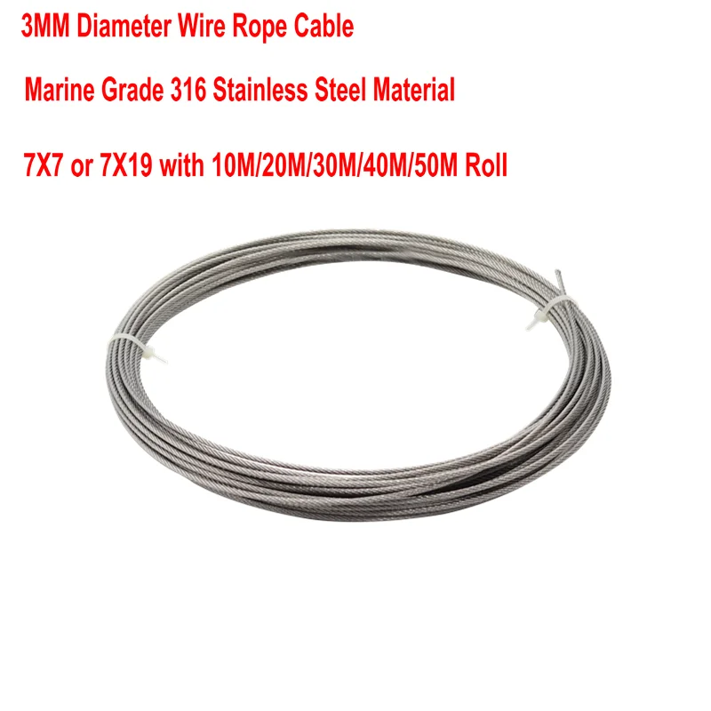 3MM 10M/20M/30M/40M/50M Roll Marine 316 Stainless Steel Soft 7X7 7X19 Wire Rope Cable for Ocean Fishing Line Water Pump Hoisting