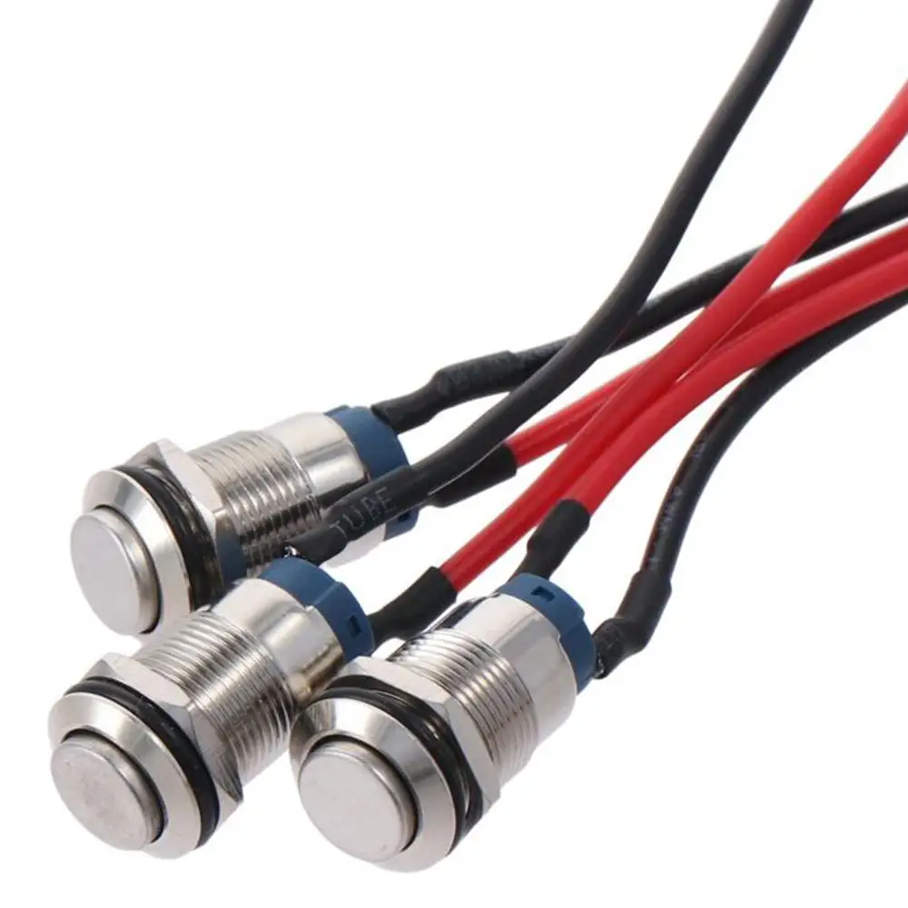 12mm 2A 12V/24V/125V/250V AC Prewired Waterproof Push Button Latching Self-Locking Stainless Steel Push Button On Off