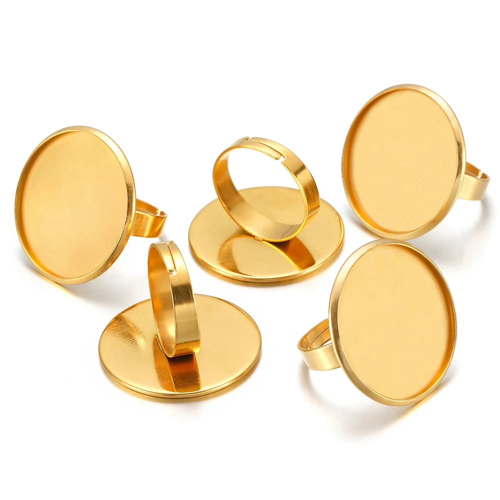 5pcs 10-25mm Inner Size Round Thick Stainless Steel Adjustable Ring Settings Cabochon Blank Base DIY Jewelry Making Findings