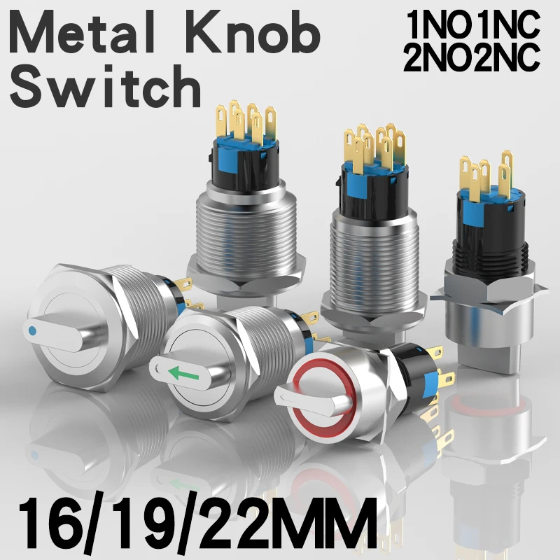 16MM/19MM/22MM Electrical Metal Rotary Switch 2-3 position Latching Self-Locking With Ring Light Stainless Steel Knob Switch  Read more