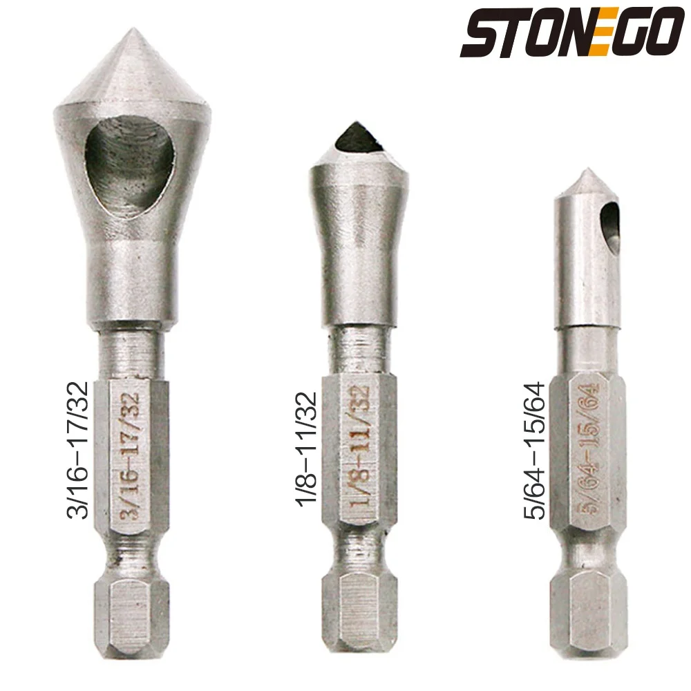 STONEGO 3PCS 90 Degrees Countersink Bit Deburring Drill Bits Tapper Hole Cutter Hand Tools Wood Soft Metal Plastic Chamfer  Read more