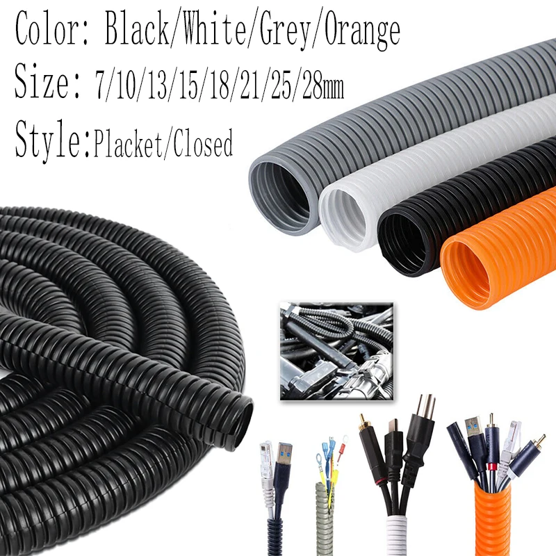 Color Auto Wire Loom Sleeve Corrugated Plastic Conduit Hose for Car Truck Motorcycle Engine Electrical Cable Protection Tubing