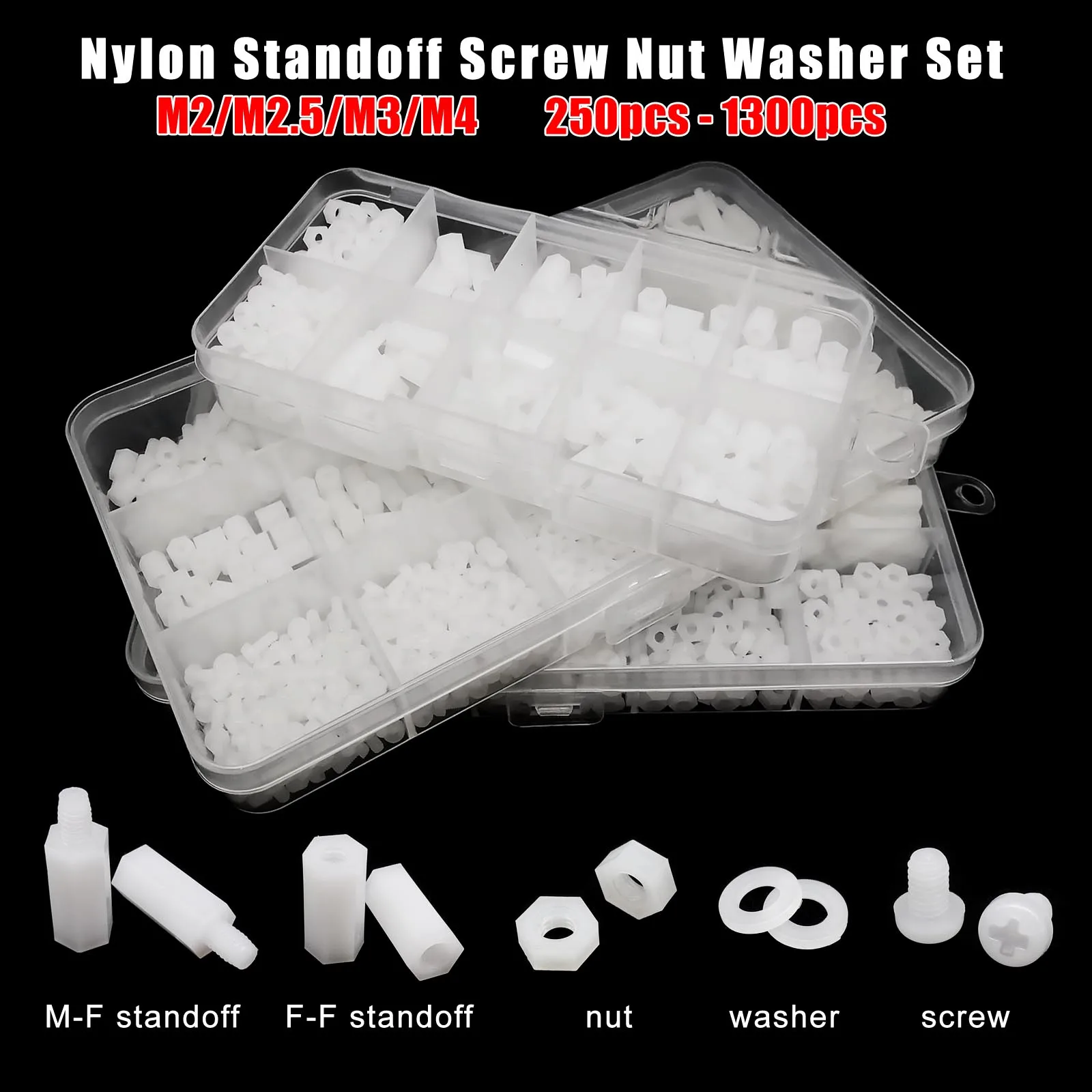 1 Box M2 M2.5 M3 M4 White Plastic Nylon Insulated Hex Standoff Hexagon Pillar Spacer Column Screw Nut Washer Assortment Kit Set