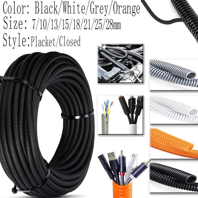7mm-28mm Color PE Insulated Corrugated Pipe Wire Hose Plastic Corrugated Pipe Car Cable Heat Resistant Protective Sleeve  Read more