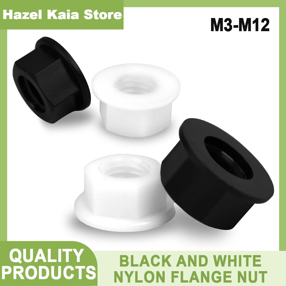 Hex Plastic Nylon Flange Nut Metric Thread Flat Bottom Nuts Black White Heat Electricity Insulation M3 M4 M5 M6 M8 M10 M12