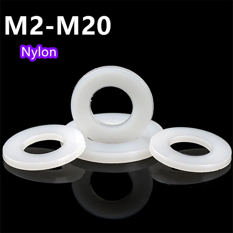 20-100pcs Nylon Washer Flat Gasket Plastic Sealing Hard Washers White M2 M2.5 M3 M4 M5 M6 M8 M10 M12 M14 M16 M18 M20