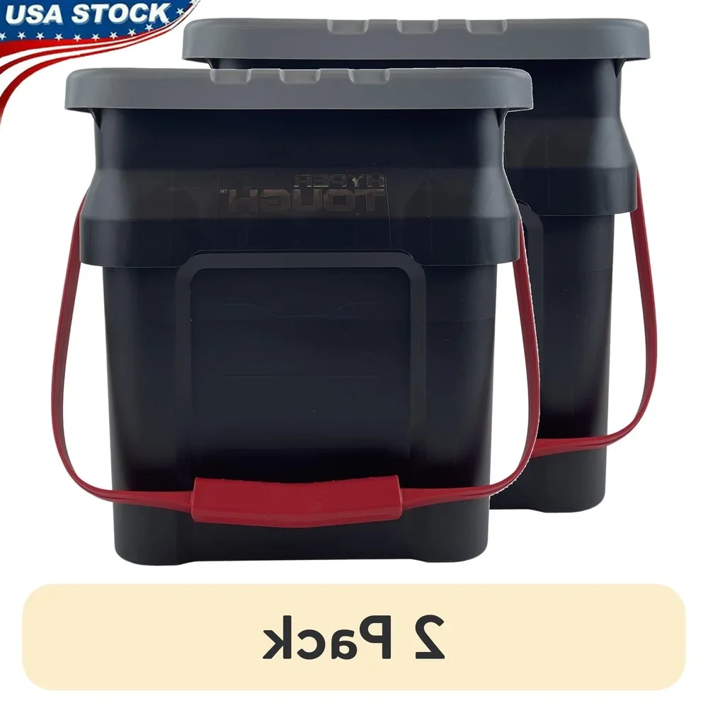 5 Gallon Heavy Duty Plastic Bucket Tote Stacking Storage Black Portable Carrying Handle Ideal Garage Yard Home Projects