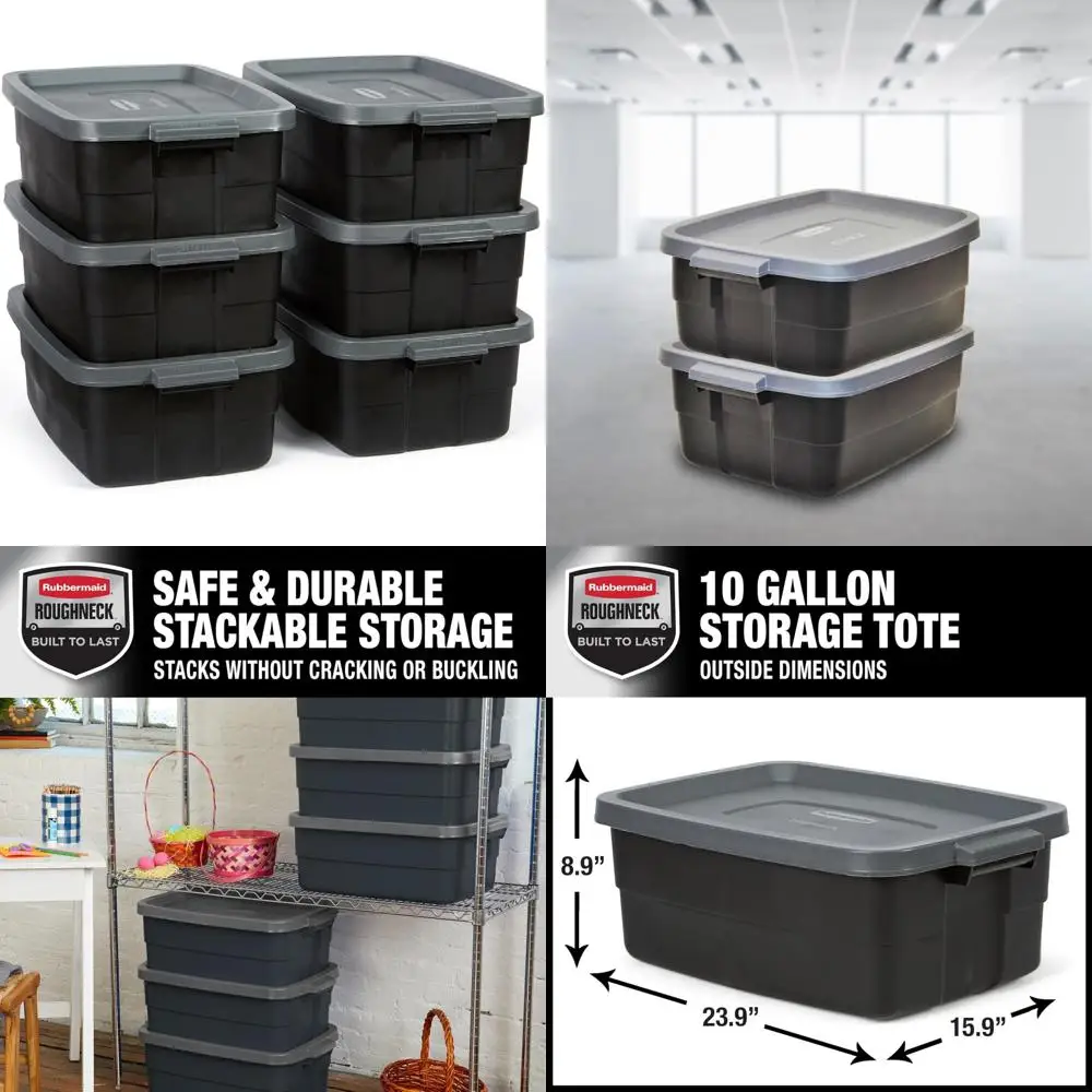 Rubbermaid Roughneck 10 Gallon Storage Totes, Set of 6, American-Made, Black & Gray, Durable Stackable Plastic Bins with Lids an  Read more