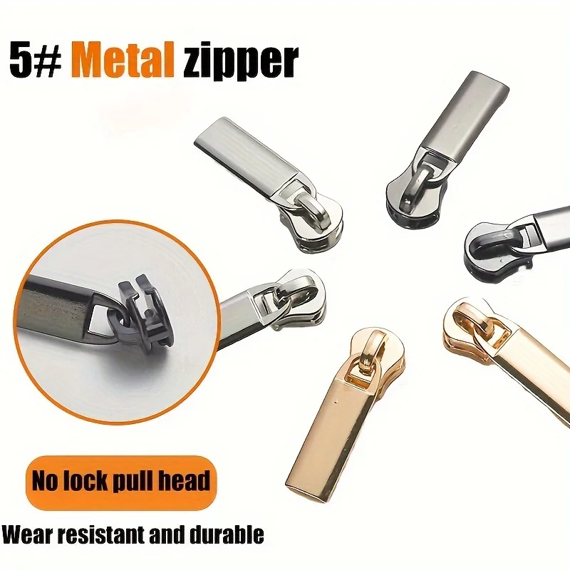 20-Piece Set Premium Metal Zipper Heads Gold Silver Bronze Black - Durable Smooth for DIY Clothing Luggage Repair