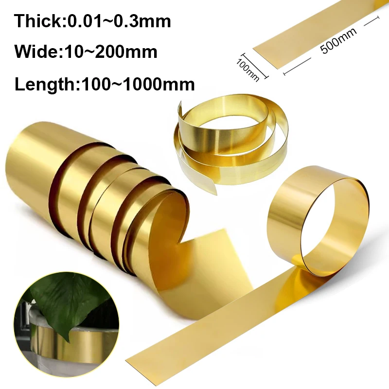 1 piece of brass foil width 10-200 mm thickness 0.01-0.3mm brass skin brass metal sheet foil plate length: 100mm~1000mm
