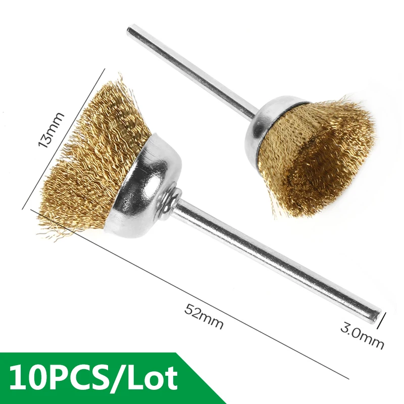 10PCS/Lot Brass Brush Steel Wire Wheel Brushes For Metal Surface Cleaning Polishing Brush Rust Removal Rotary Tool 3mm Shank
