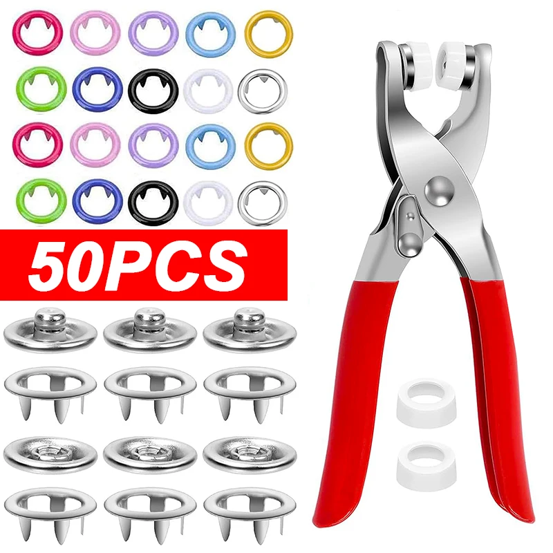 Snap Button Kit with Hand Pressure Pliers 50pcs Snaps Metal Snaps for Sewing Sewing Snaps for DIY Crafts Clothes Hats Sew Tool