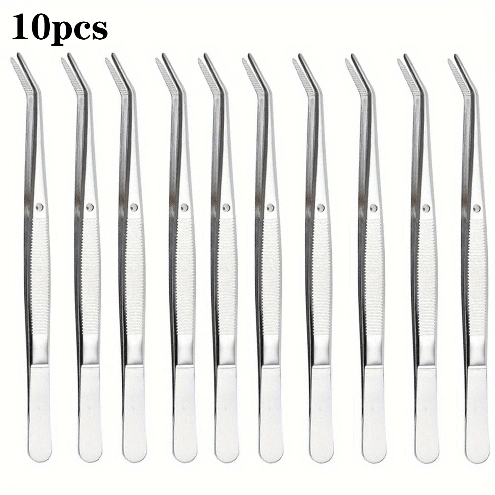 5/10pcs Stainless Steel Hand Tweezers with Serrated Tips Durable Metal Pliers for Precision Gripping, Laboratory Crafting Tools