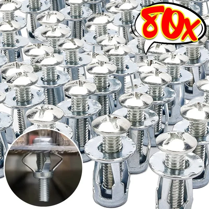 80/4PCS Petal Shape Rivet Nut Screw Bolt Kit Expansion Metal Rivetnut Panel License Plate Clamp Lock Jack Nuts Wall Fasteners
