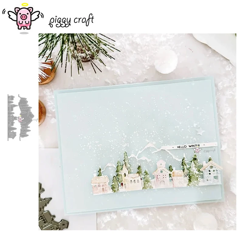 Piggy Craft metal cutting dies cut die mold House tree edge side Scrapbook paper craft knife mold blade punch stencils dies