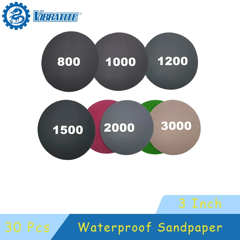 3 Inch Waterproof Sandpaper 30 Pcs Assorted 800-3000 Grit Hook and Loop for Polishing and Sanding Metal Car Body Woodworking