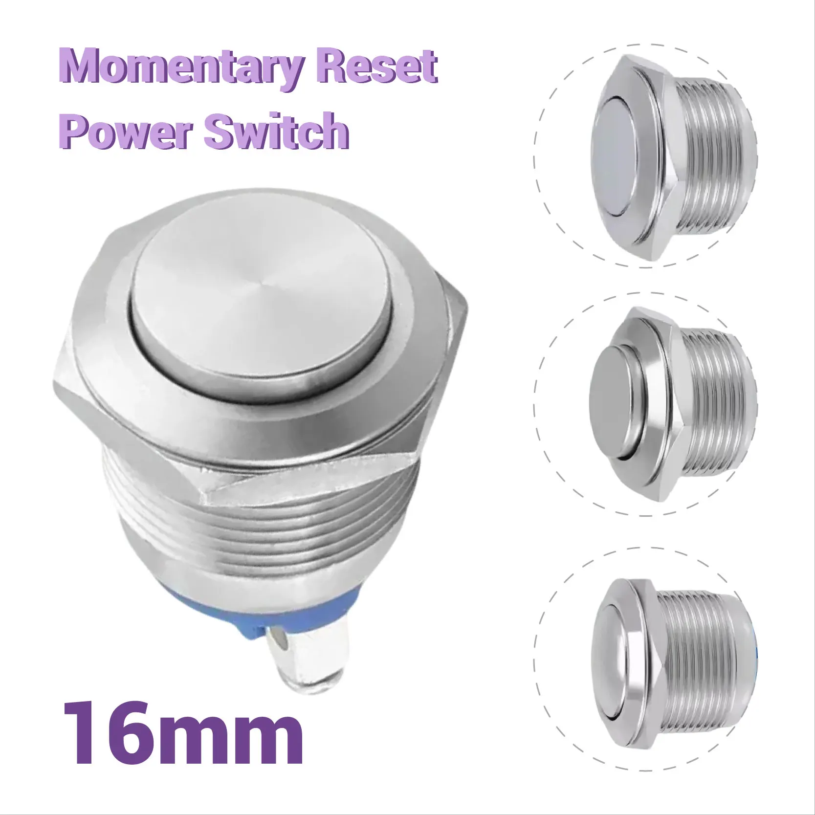 16mm Flat/High/Round Head Waterproof Momentary Reset Metal Push Button Switch Screw Terminal Car Engine Doorbell PC Power Switch