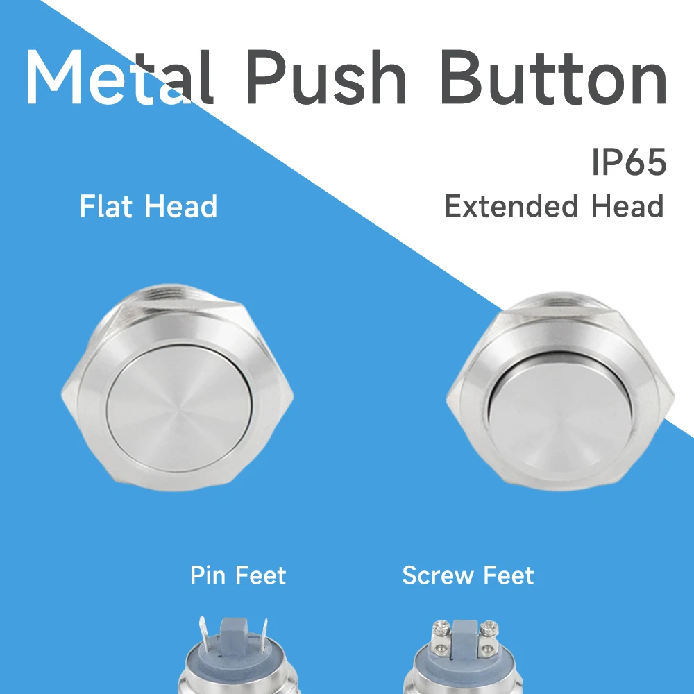 16mm 19mm 22mm metal push button switch on off power Waterproof screw Needle foot Flat extended Head 6v 12v 24v 110v 220v ip67