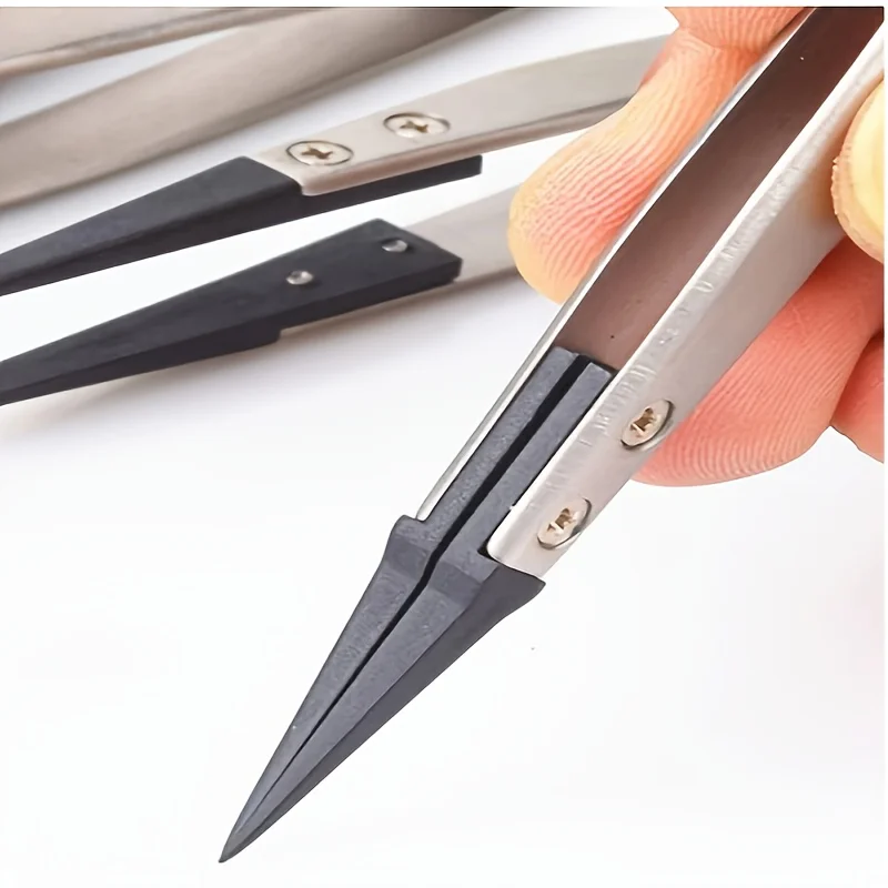 1PCS of ESD anti-static precision tweezers - anti-static tips, heavy-duty metal construction suitable for electronics