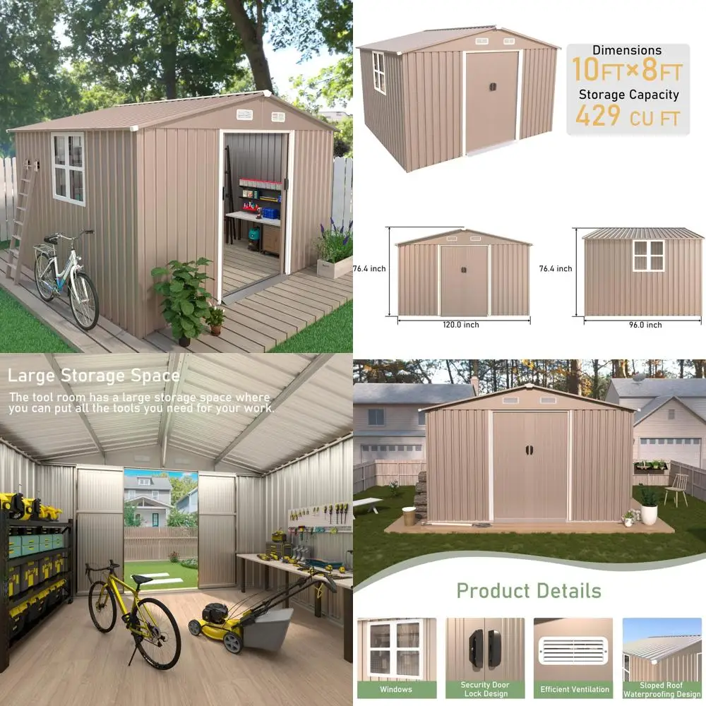 Durable 10x8 Metal Outdoor Storage Shed with Floor, Window, and Lockable Doors for Weatherproof Storage