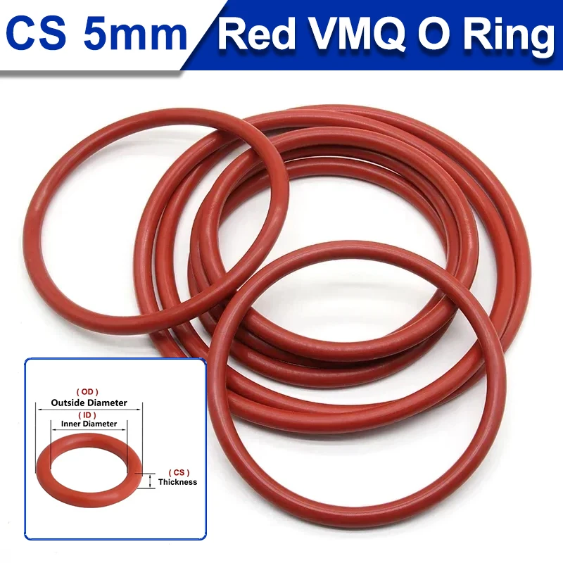 Red Food Grade VMQ O Ring Gasket Thickness CS 5mm OD 15mm ~ 150mm Sealing Waterproof Washer Round O Shape Silicone ring 5/10pcs  Read more
