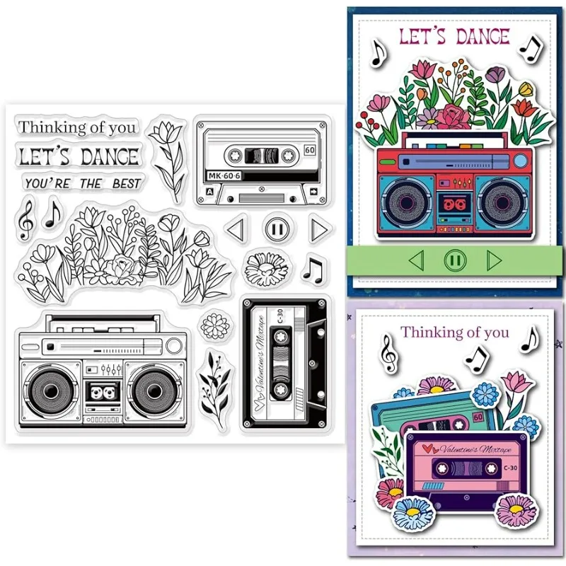1PC 6x6in Radio Clear Stamps Tapes Silicone Stamps Flowers Words Transparent Rubber Seal Stamps for Card Making DIY Scrapbooking