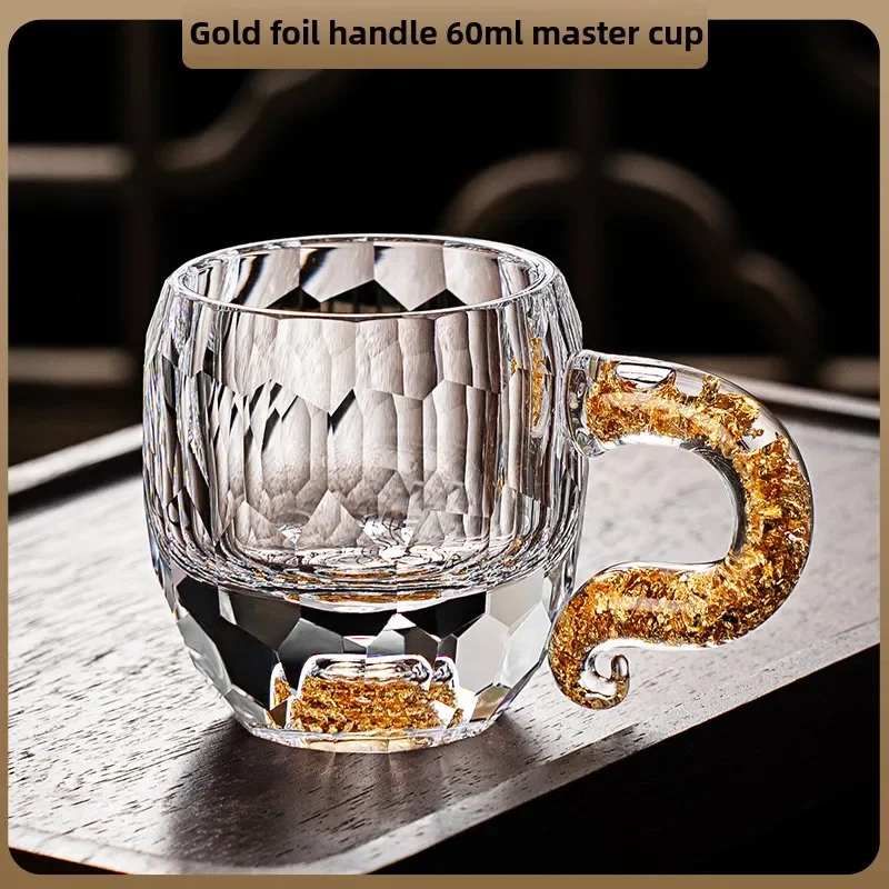 1pcs High-grade gold foil master cup high-value household tea cup thickened crystal glass tea cup coffee cup
