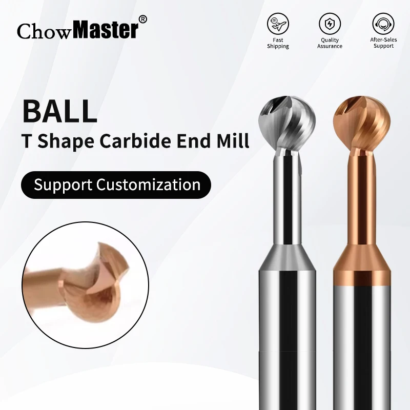 Chowmaster Ball T-Shaped Arch Milling Cutter 3D Lollipop Carbide End Mill 2F 3 Flutes R0.5 R1-R10 Ball Slot for Steel Aluminum