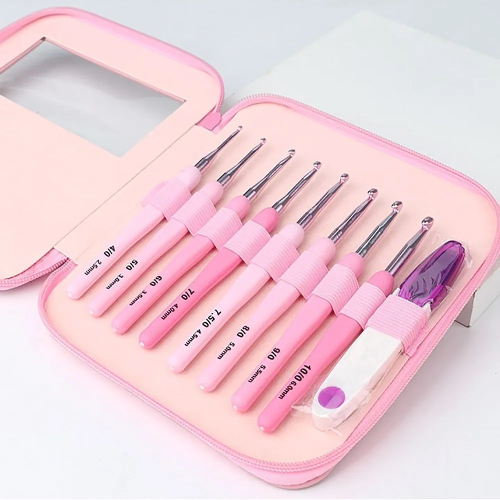 9pcs Crochet Hook Kit 2.5-6mm Ergonomic Soft Handle Aluminum Hooks Set with 8 Sizes for DIY Crafts Knitting Crocheting Supplies