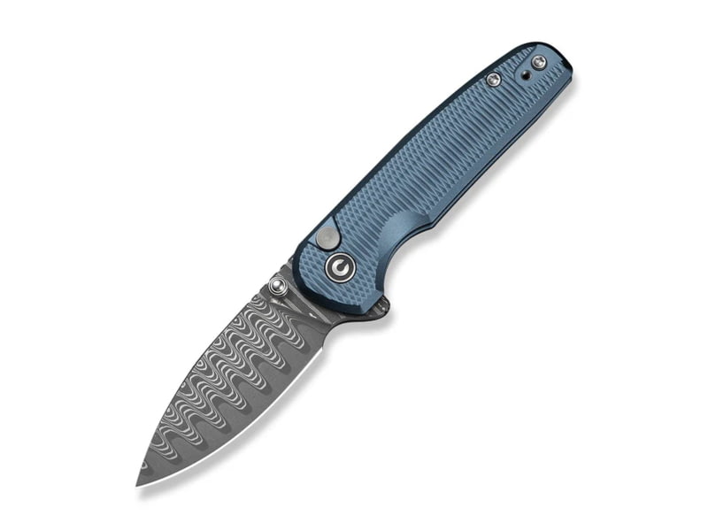 CIVIVI Mini Shakan Flipper & Thumb Stud & Button Lock Knife Ripple Patterned Blue Aluminum Handle 2.48inch Damascus Blade - C20052F-DS1. Measuring An Overall Length Of 5.99 Inches And Featuring A 2.48-inch Drop Point Blade Crafted From Durable...  Read more