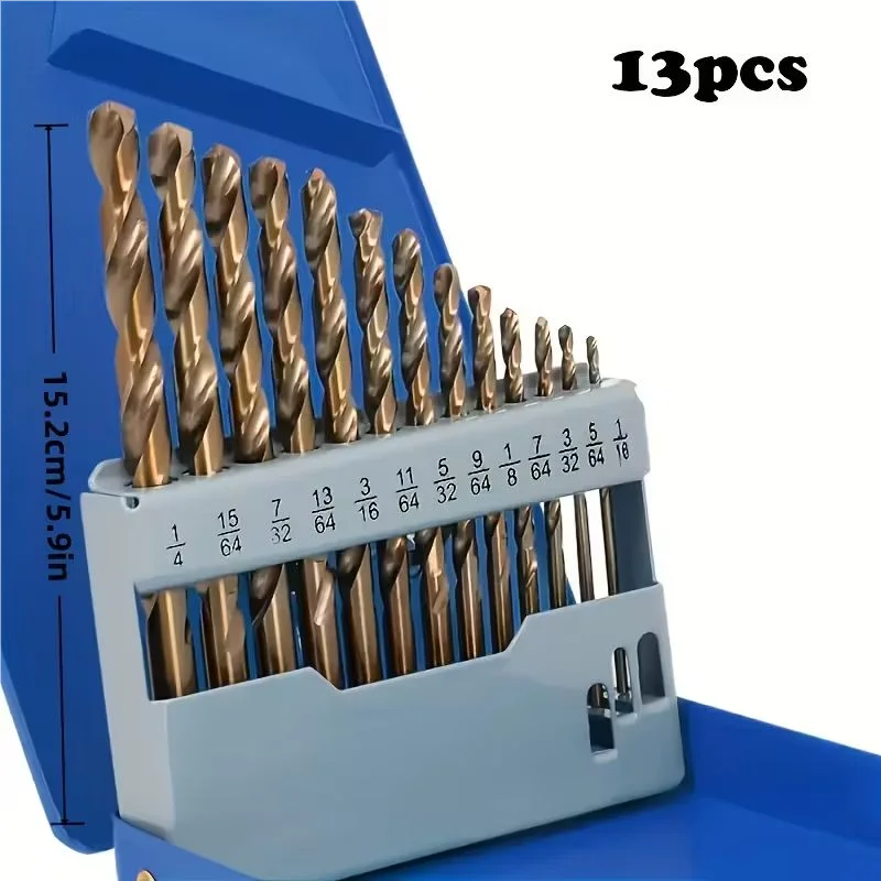 13pcs Cobalt Carbide Drill Bit Set Straight Handle Twist Drill M35 High-Speed Steel Spiral Drill Bits for Metal Steel Iron Wood