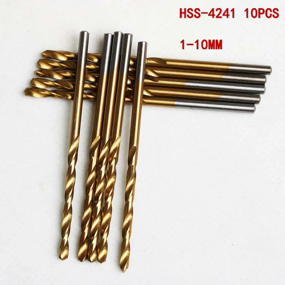 10PCS Drill Bit Set High Speed Steel Twist Drill Set Metal Punching Tool WoodworkingTools 1-10MM