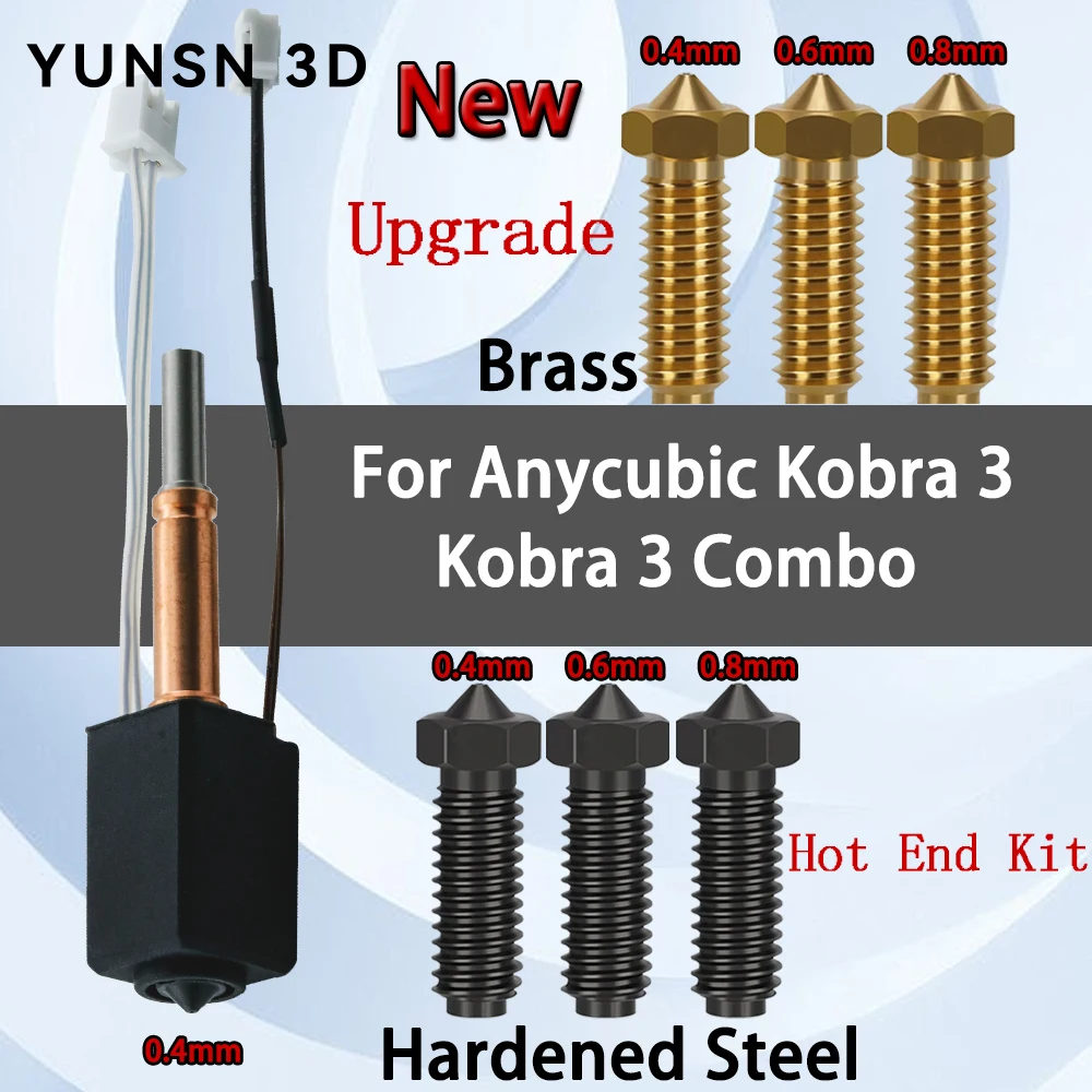 For Anycubic Kobra 3 Hotend Kit New Upgrade 0.4mm 0.6mm 0.8mm Brass hardened steel nozzles for Kobra 3 Combo 3D Printer