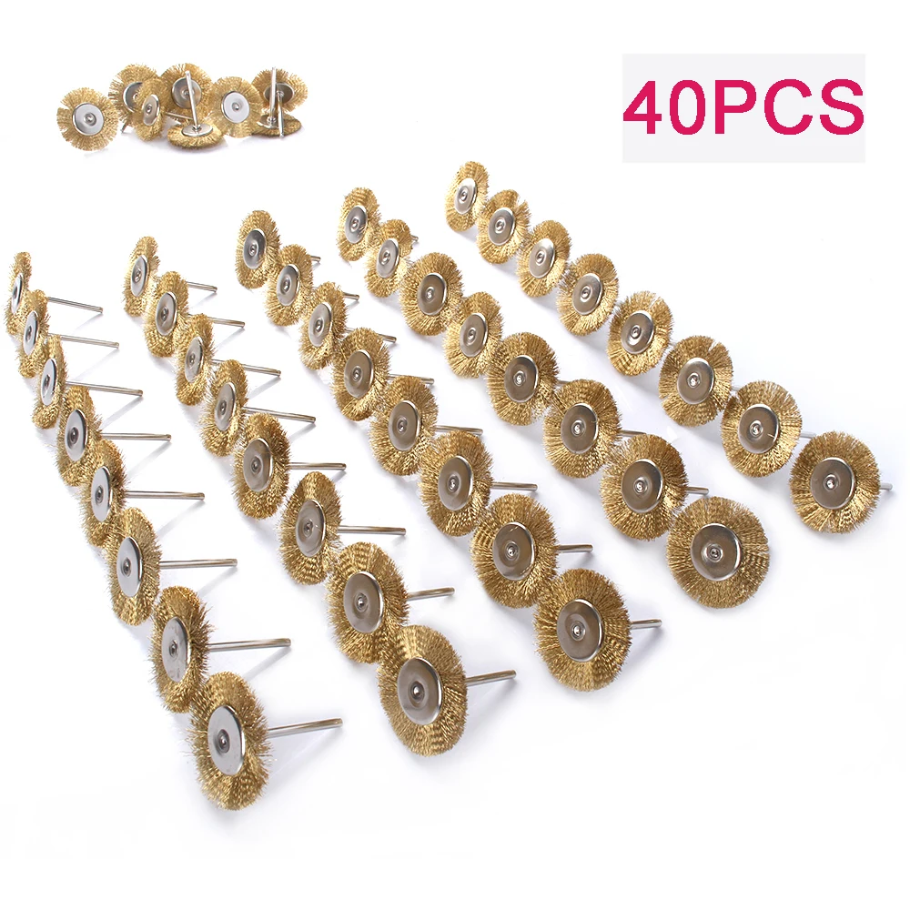 40Pcs Brass Brush Steel Wire Wheels Brushes Drill Rotary Tools Polishing Dremel Rotary Tools For Metal Rust Removal Polish Clean