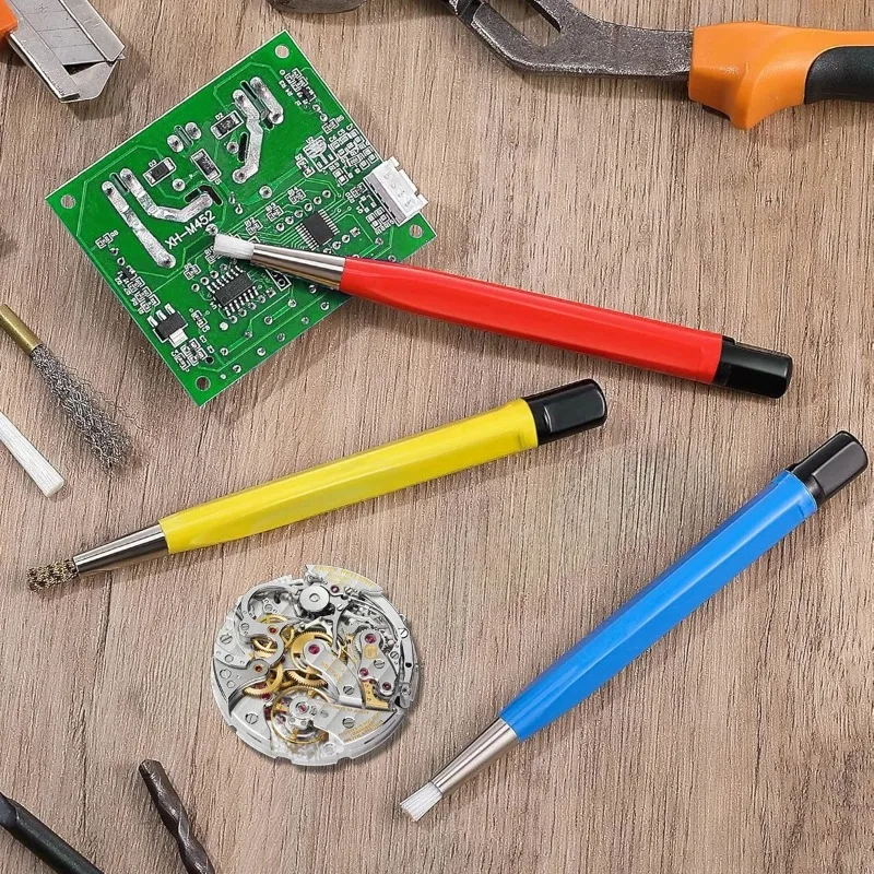 3Pcs/Set Rust Removal Brush Pen Glass Fiber / Brass /Steel /Nylon Brush Pen Shape Watch Parts Polishing Cleaning Tool