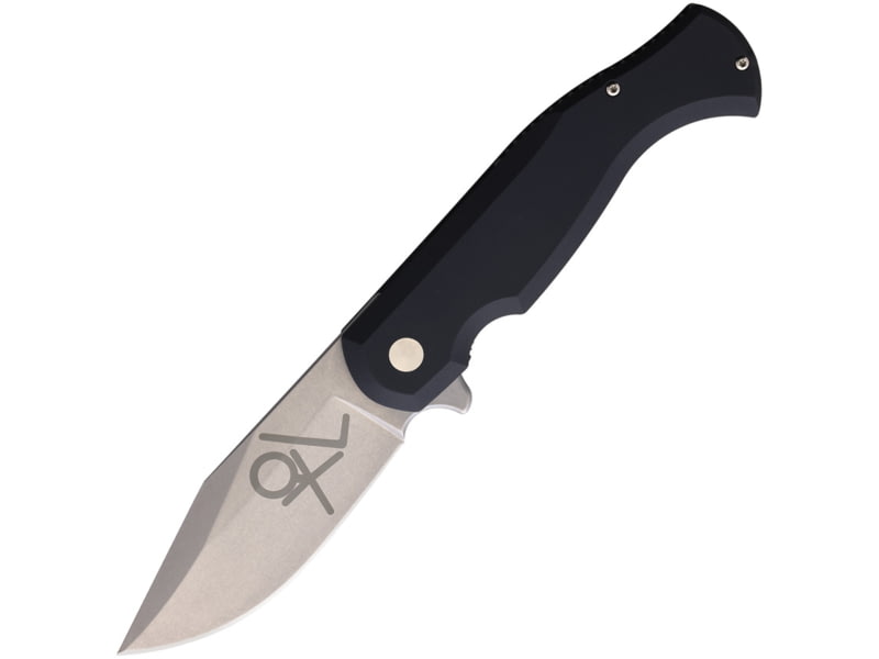 Tools for Gents Eastwood Black Folding Knife by Gudy Van Poppel 5.25in Closed 3.75in Stonewash D2 Tool Steel Blade Black Aluminum Handle Nylon Sheath
