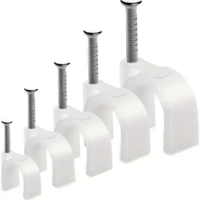 100Pcs Cable Clamp with Steel Nails Plastic Nylon Tie 6/10mm