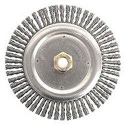 Flexible brushing actionCan be mounted in multiples Bristle Wire Material = Steel Diameter = 6 in Bristle Wire Size = 0.0118 in Arbor Arbor Thread - TPI or Pitch = 5/8 - 1/2 in Face Width = 3/4 in Face Plate Thickness = 7/16 in Trim Length = 1 7/16...