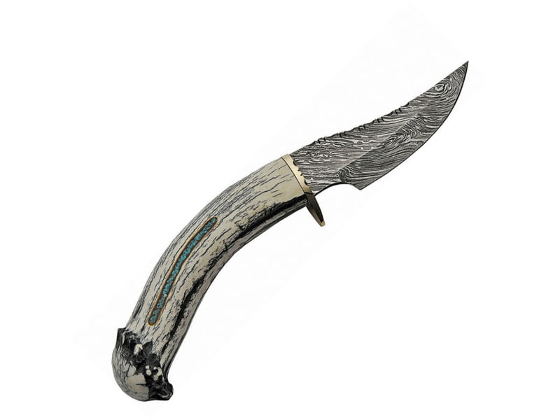 Rite Edge Damascus Skinner Knife 4" Damascus steel skinner blade Deer horn handle RU-DHDMB1