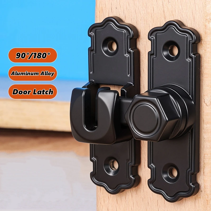 Safety Door Bolt Latch Lock 90 180 Degree Aluminum Alloy Toggle Latch Sliding barn Door Lock Black Iron Right Angle barn Lock