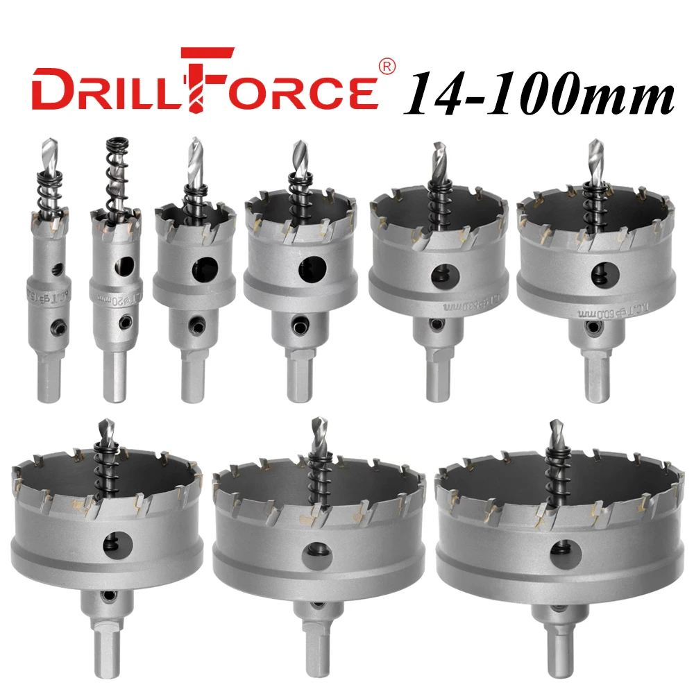 Drillforce 14-100mm TCT Hole Saw Drill Bit Alloy Carbide Cobalt Steel Cutter Opener Stainless Steel Plate Iron Metal Cutting Kit