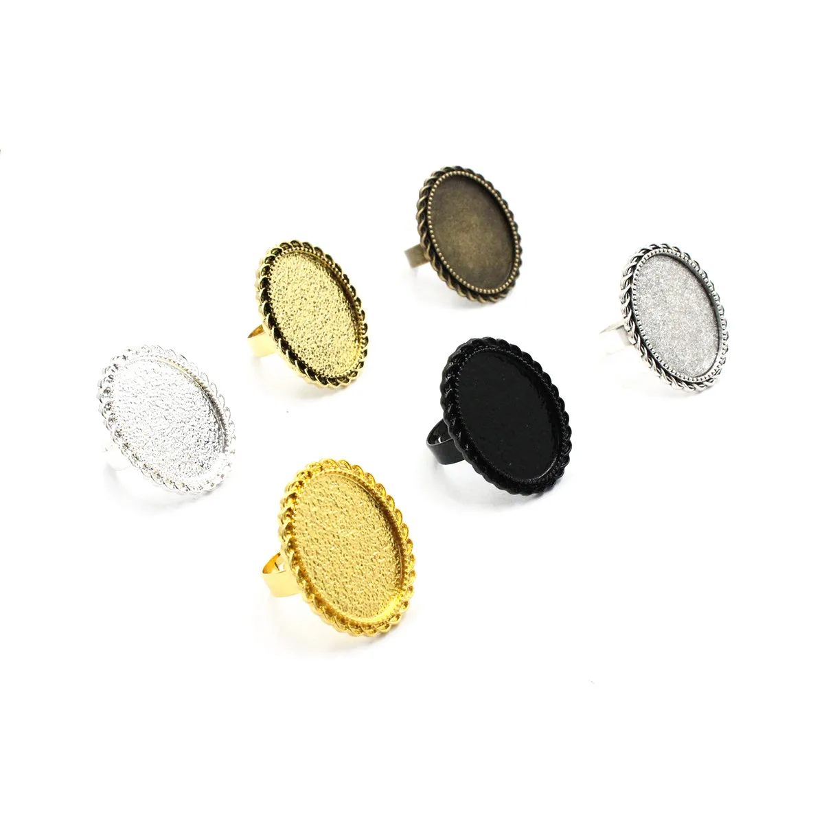 Fit 18x25mm Oval Cabochons Pattern Glass Ring Metal Alloy Blank Setting Bezel Blank Base For DIY Accessories Making 10pcs K04636