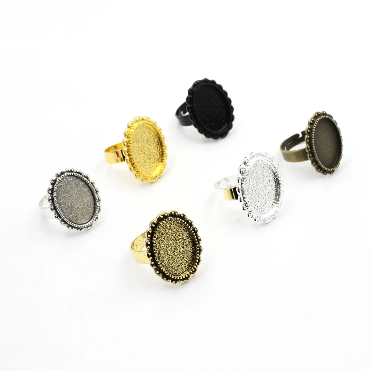 Fit 18x13mm Oval Cabochons Metal Alloy Blank Setting Bezel Pattern Glass Ring Base For DIY Making Accessories 10pcs K04635
