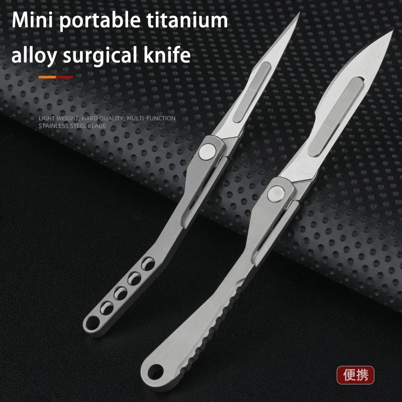 Mini Titanium Alloy Folding Scalpel Medical Folding Knife EDC Outdoor Unpacking Pocket Knife with 10pcs Replaceable Blades  Read more