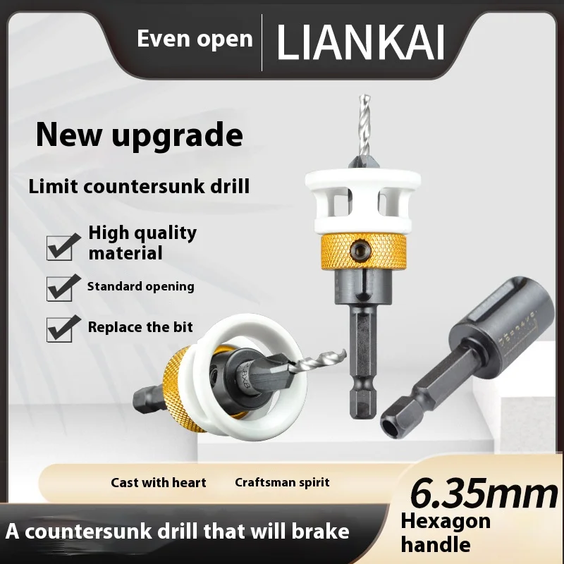 Woodworking Limit Four Edge Countersink Bit Alloy Head Cone-Hole Drill Adjustable Depth Step Drill Hidden Drilling Pilot Hole