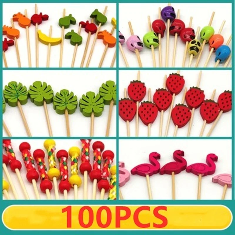 100Pcs Creative Disposable Fruit Fork Multi-style Bamboo Stick for BBQ Dessert Sandwich Food Fork Table Decoration Supplies  Read more