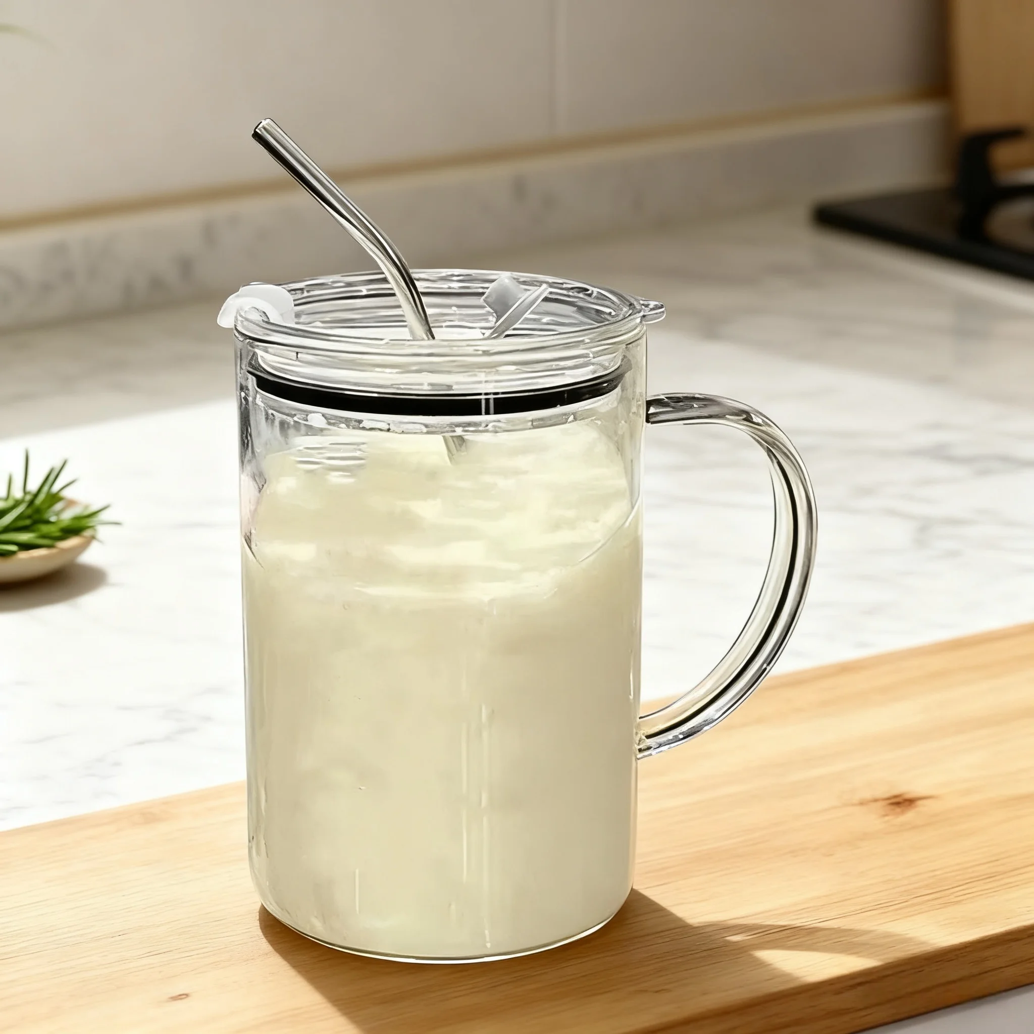 1L Drinking Glass Tumbler With Lid And Straw Glass Coffee Cup Transparent Cup Juice Mocha Cups Glass Mug Milk Juice Cup
